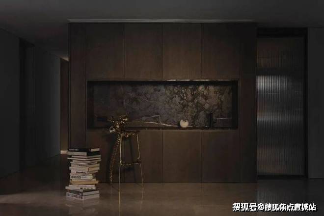 不同的材质融合了工艺手法的难度,设计师在细节上追求完美,白色的大理石材下内嵌黄铜金属线,将石材本身的自然肌理衬托得分外明显.