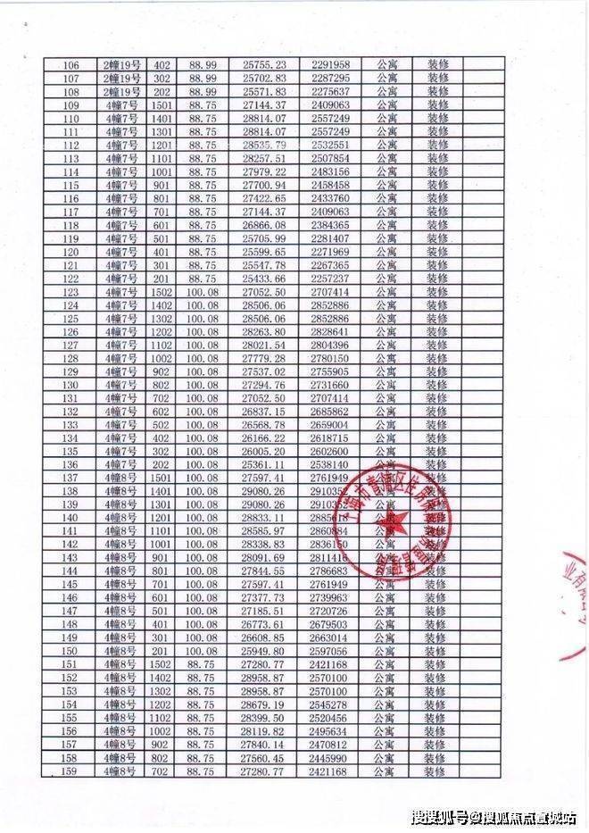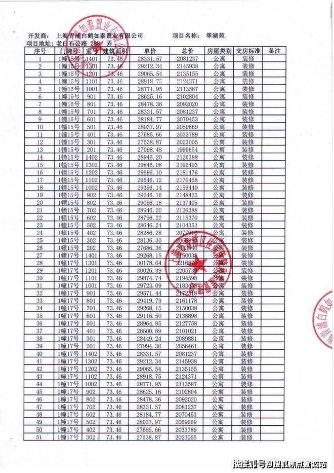 项目一房一价表