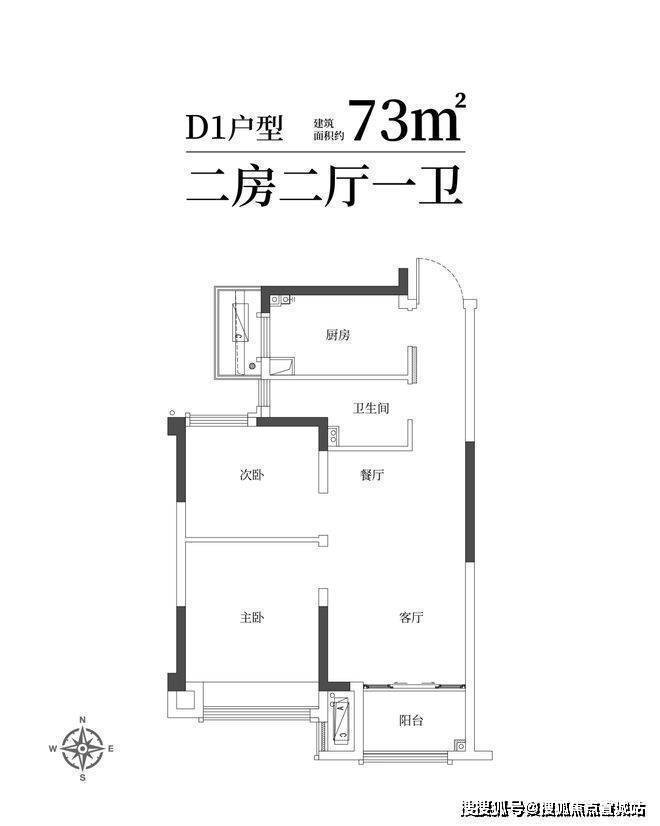 建筑面积约73㎡舒适两房一卫,年轻家庭的向往