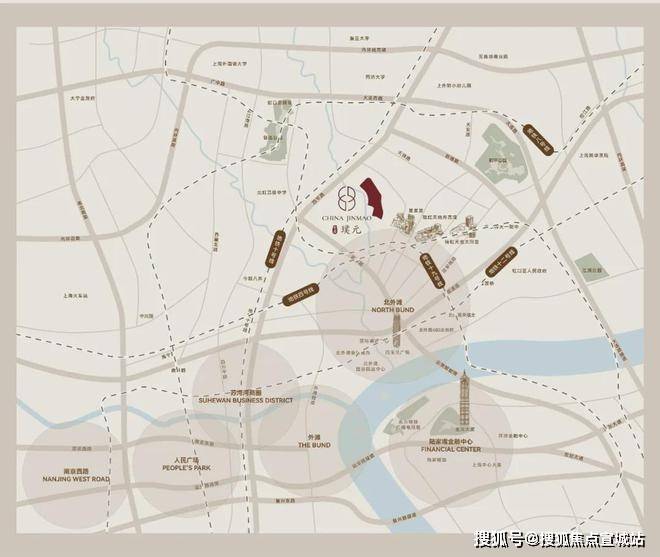 从金茂·璞元的具体位置来看,与瑞虹新城融为一体共享配套,同时距离地铁站更近(就在10号线邮电新村站站口),更有沙泾港天然河道与地块平行,景观优势也更加突出。