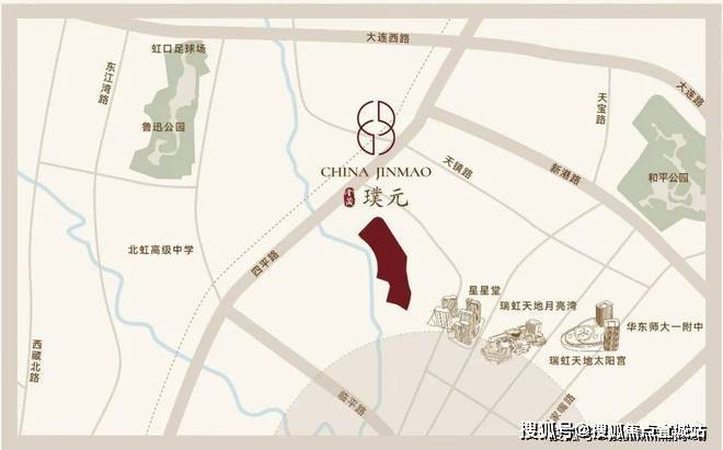 从金茂·璞元的具体位置来看,与瑞虹新城融为一体共享配套,同时距离地铁站更近,更有沙泾港天然河道与地块平行,景观优势也更加突出。