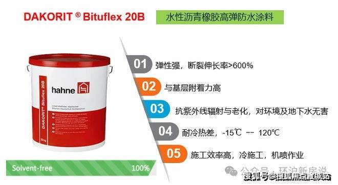 此外,项目采用防水界的“爱马仕”——德国悍能的防水系统,其达到欧洲环保要求,整体技术指标高于国家标准50%。相比传统的卷材,悍能不仅稳定性高,且能够完全贴合地面、形成无缝的完整防水面,后期维护更方便。