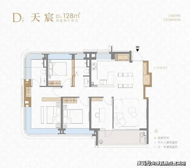建面约128㎡4房延续3S墙和双270°全景双舱亮点的同时,尺度感极大提升,南向四开间,保证了更充沛的采光和视野.客餐厅+超大尺度阳台贯穿南北,进门视野无遮挡.