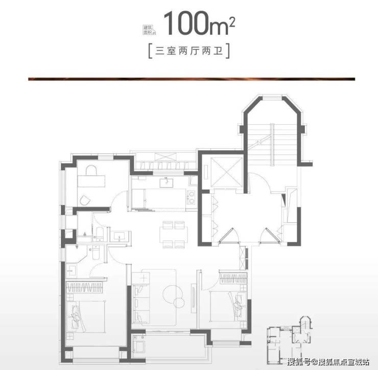 建面约100㎡的三房两厅两卫