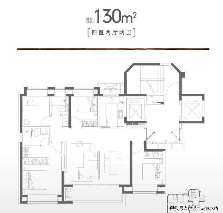 130㎡的四房户型,非常适合改善家庭置业。