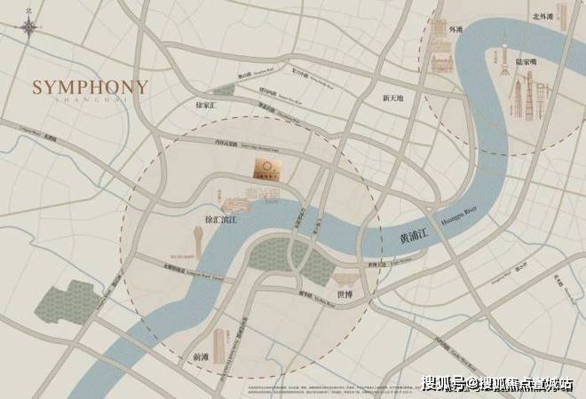 绿城·潮鸣东方,尊踞上海徐汇之心,直线距离黄浦江边仅约400米。