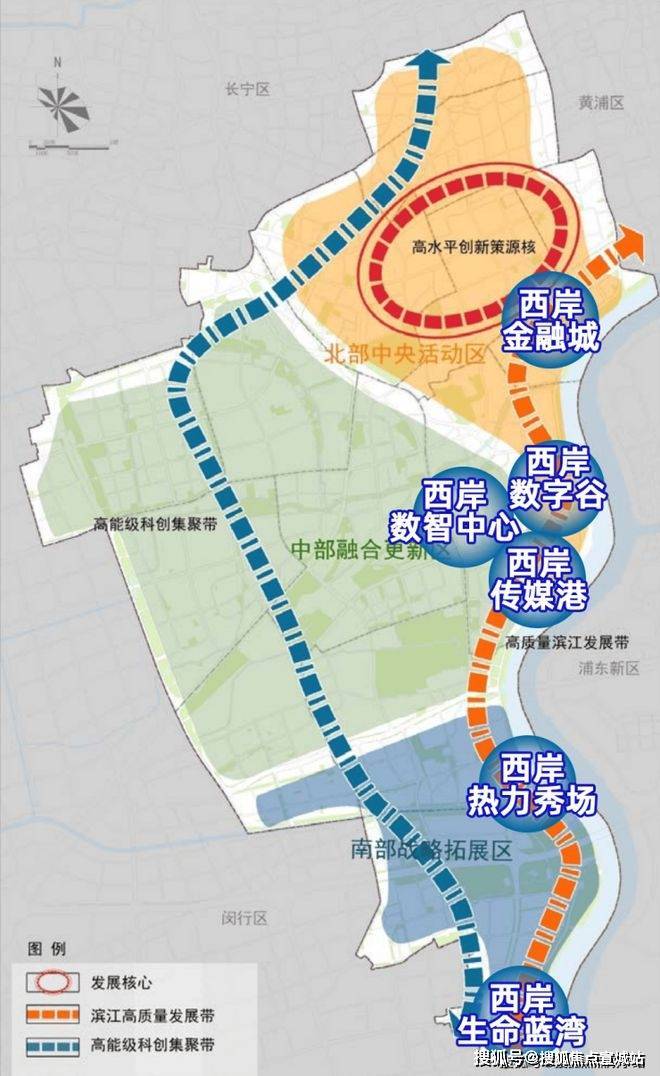 作为承载上海2035全球城市规划的战略支点,徐汇滨江以950万平方米的开发总量,打造出“一核一带”的空间格局,是媲美前滩的热门板块,是并肩于北外滩的高起点成片集群规划开发的一线滨江地段之一。