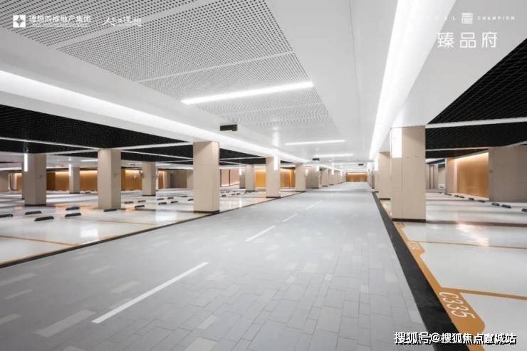 千万级房车Elemmengt Palazzo都能停得下。再加上约3.2米的净高和大片铝格栅吊顶,真是气场强大。抬头细看,地库顶部的喷淋、烟感与铝扣板拼缝还全部横竖对线。不得不感叹,这真是一家“处女座”房企。0