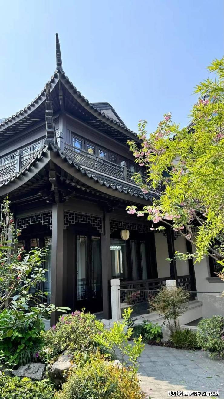 建筑风格:合院沿袭江南粉墙黛瓦风格,搭配飞檐斗拱、雕花漏窗等元素,门洞回纹造型、定制杨桃灯等为专属设计;高层采用大面积蓝灰调玻璃,搭配灰色系质感石材与深色铝板,走现代简约美学路线。