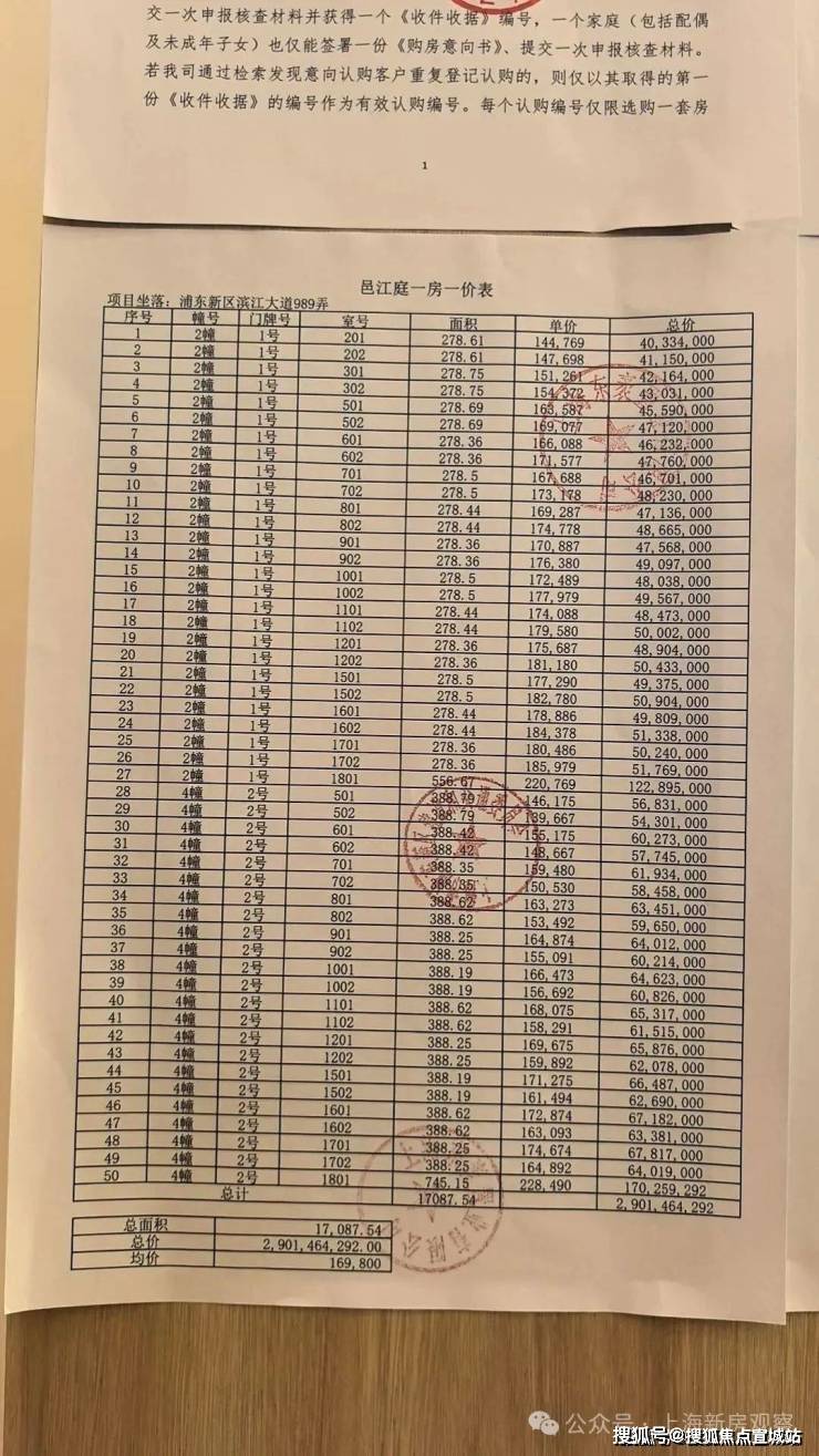 上期一房一价表如下: