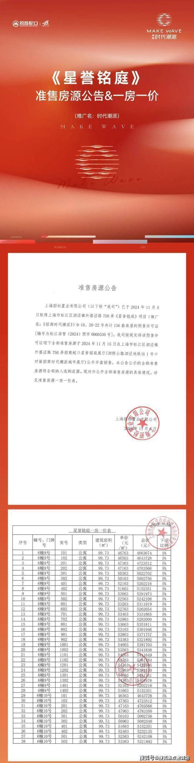 2024年1月10日,经过56路竞价,最终招商以52.5亿摘下松江区泗泾镇SJS20005单元14-01、16-02、17-07号地块,地块位于9号线泗泾站北侧,出让面积129624.71㎡,房地联动价51100元/㎡。