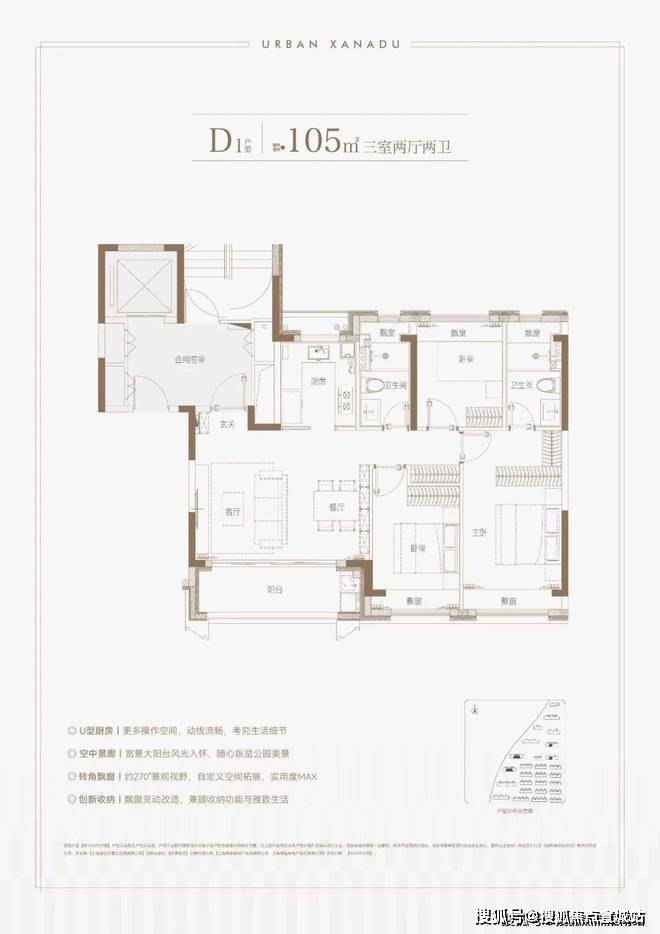 户型三开间朝南、再加上“2个飘窗+双联阳台”,不管是采光、视野、通风、私密性,还是实用性都十分出色.