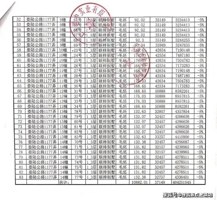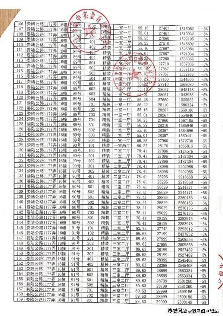一房一价表: