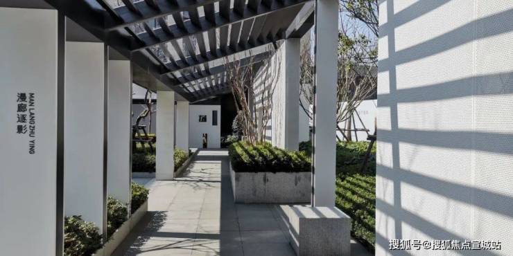 沿袭一贯的精细化要求,入口大门使用轻盈通透的钛金板,增强入户品质感;景墙采用美国白麻材质进行拉丝工艺,更显细腻;地面铺装采用棕麻黑材质,大气时尚。且各项材质的色彩相互对比,相互映衬,更加突出项目的雅韵精致。