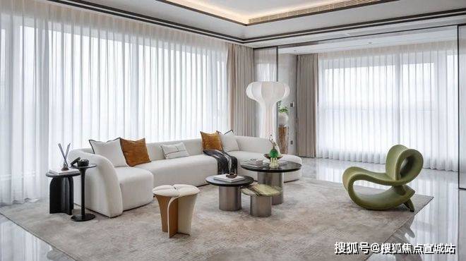 在示范区,挑选了琚宾设计的WAVE1960样板房,来感受一下大师以ART DECO的对称、几何美学,构建起的摩登艺术空间。