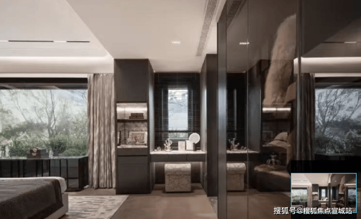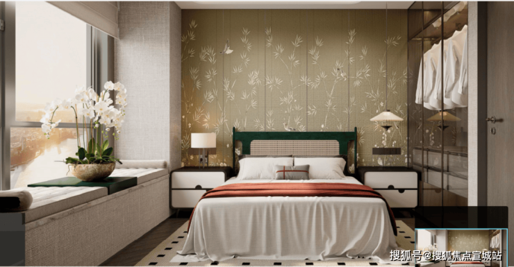 亮点一:270度环幕飘窗,通透主卧套房,对于卧室而言,常规的尺度延扩,不足以称为迭新。映江润府,103边套户型,引入了千万级以上豪宅之中才能够拥有的270度环幕飘窗设计,实现了极致的采光和观景体验。
