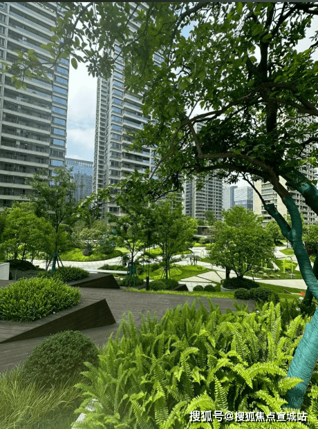 采用"新亚洲主义"风格,外立面为铝板+玻璃幕墙组合,楼间距最大达80米。园林设计由贝尔高林操刀,打造"五重立体景观",包含: