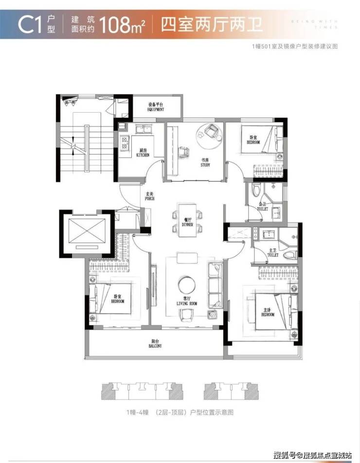 建面约108㎡为四房格局,小高层住宅全部配置珍稀的建面约108㎡宽境四房户型,南向三开间,约10米奢阔面宽,进一步拉伸采光面,约6.5米的阔尺双联阳台,满足生活、瞰景双重需求.同时做到了功能性、舒适性、性价比的完美融合,深受青睐,改善一步到位,不容错过.