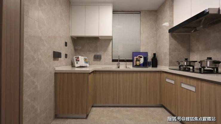 项目厨房采用兼富 实用与美观的U型科学设计,合理的动线规划,奢阔灵动的空间布局,充分放大化利用率; 明厨设计,有效保证通风采光; 台面防水设计及便于清洁的台下盆设计,小细节处见真章; 顶部吊柜+下方橱柜设计,给予充足的存储收纳空间。用幸福烹饪美味佳肴,为幸福生活创造美好滋味。