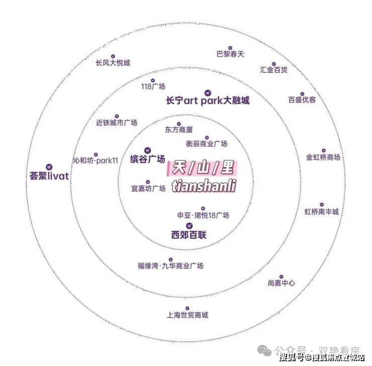 【3km】巴黎春天/金虹桥商场/汇金/百盛约2.5km、尚嘉中心/虹桥南丰城约2.8km、中山公园商圈约3.4km