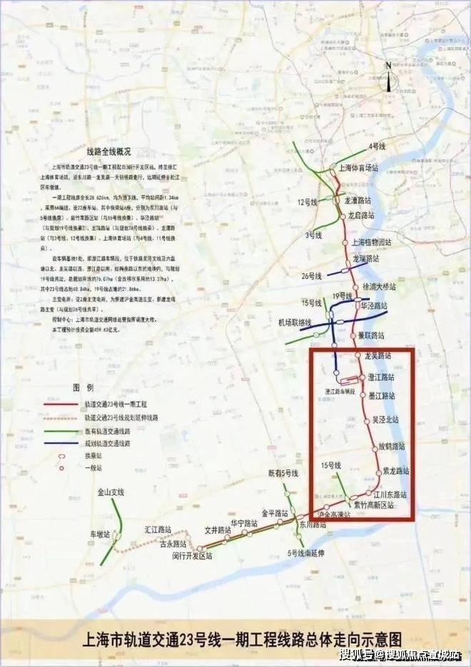 作为上海西南重要的交通主干道,23号线起于闵行开发区站,终于徐汇上海体育场站,一期线路共设车站22个,其中9个位于吴泾,沿途可与3、4、5、12、15等多条轨交换乘,预计将于2027年底试运营通车。