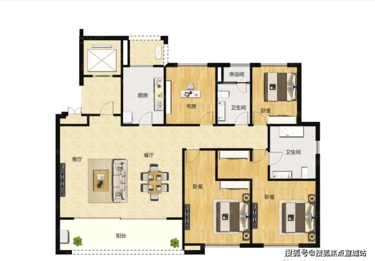 291、家配图:在墨线图的基础上配置上家具的平面效果表现图。