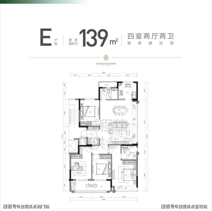 139㎡也是三开间卧室朝南,1个卧室朝北,餐客厅竖向安置,属于当下最优化的大户型设计了.