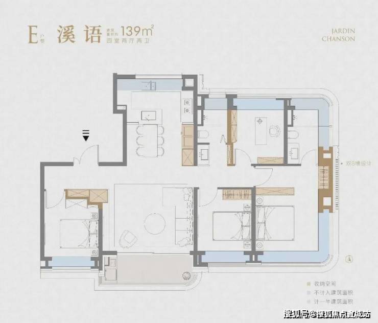 139㎡4房则是集大成的改善户型;该户型是独立电梯入户,保证了业主的私密性和尊贵感。
