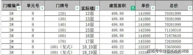一房一价表: