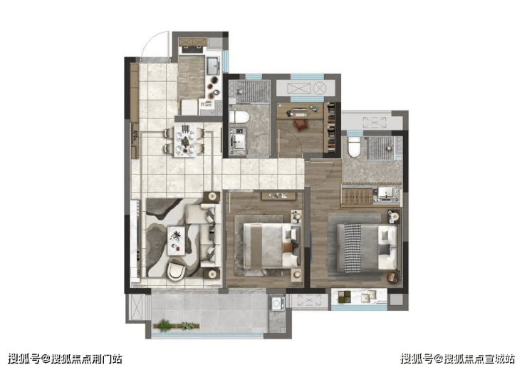 舒适三居:建面约95㎡三室两厅两卫