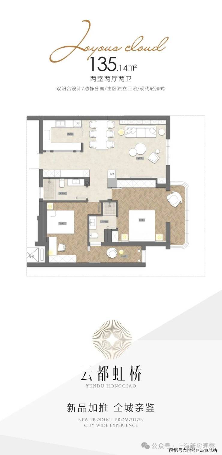 长宁古北国际社区【云都·虹桥】建面135-175㎡,户户带阳台,得房率80-110%!