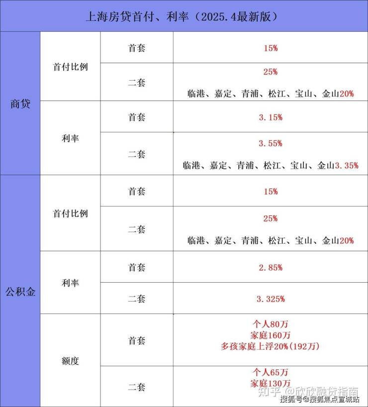 二套商贷:嘉定、青浦等区域20%,其他区域25%。