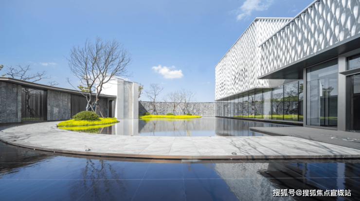 1、化繁为简、奢制现代风尚:外立面提取抽象的“山墙”符号,实现苏式元素与现代设计手法的完美结合,并采用金属漆一体板,配以高级灰高质感色彩。