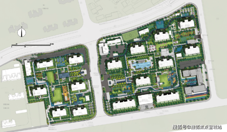 两个地块的主入口相互映衬,设计均以苕溪“水”与“舟”为元素展开,呼应我们提出的“苕溪泛舟”的设计主题。