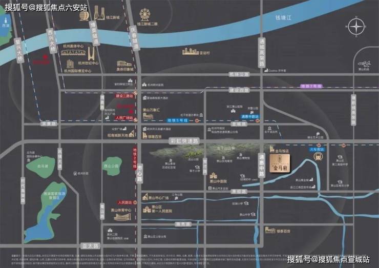 望金马府,以约1.2罕见容积率的姿态,落址萧山千年贵脉,坐享醇熟烟火气,北望北干山苍翠,东临商城河潺潺,与萧山最早的五星级酒店——金马饭店仅一路之隔。