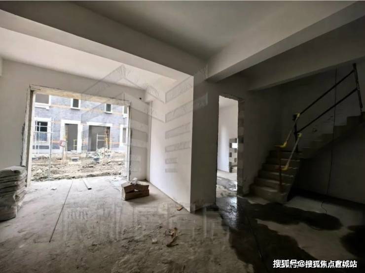 从一个不起眼的施工小门走进去,先看的是一个406㎡的双拼户型,地上三层,有阁楼,但需要自己后期改造,地下一层.