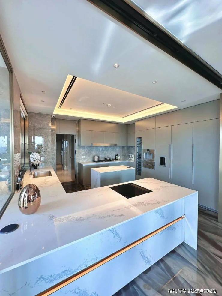 比如采用奢石静雅棕石、雪山银狐石、月光白石、挪威木纹石等石材;