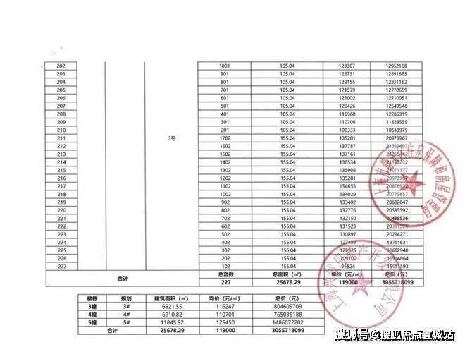 前期一房一价表: