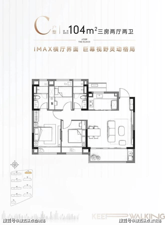 建面约105㎡C户型更是呈现了市场罕见的宽景横厅,巨幕视野悦见天地!