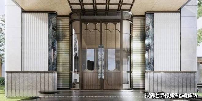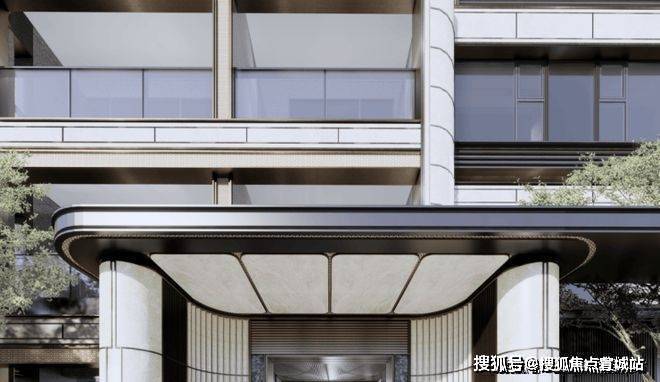 上海浦东招商臻境售楼处电话☎:400-8828-814(售楼处预约看房热线)在楼栋主入口同样运用石材+弧形铝板等元素,同时还有格栅装饰,质感提升明显: