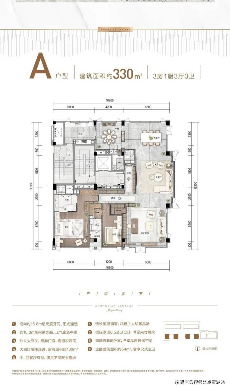 像中天纪HCC是310-350方的宽景平层,这样的房子,轻易就可做出4房、5房。傲立钱塘新城中轴,擎动杭州未来经济,献给城市未来的一号资产,建面约315-340㎡宽幕大平层,致敬纽约市著名豪宅ONE5