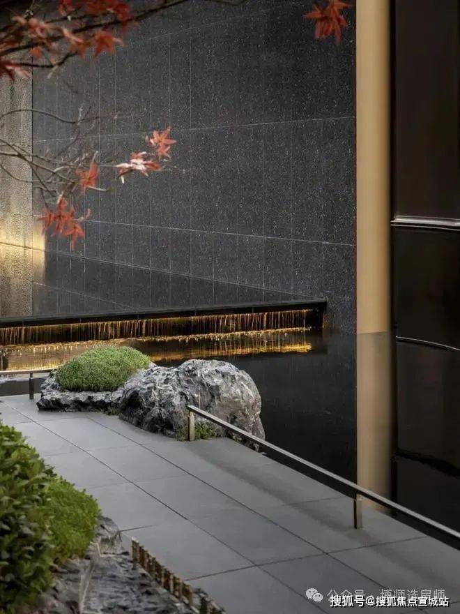临水垫步,衔接山水亭廊,使游人置身在小桥流水的闲情中。听泉观瀑,流动的泉水“泠泠”声脆,为空间营造一处观景之地。身处其间,好似漫步山野之间,感受自然间的瀑布流水,繁忙的生活节奏在此得以放缓,享受片刻的宁静与惬意。