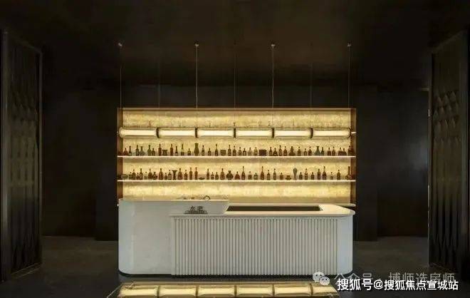 水吧台作为空间视线焦点,用“亭”的概念做了一个室内建筑。吧台细节用陶瓷烧制成型将竹元素贯穿整体。融入现代审美观念,使整个空间弥漫着东方韵味。
