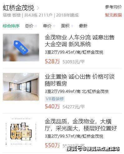 周边次新房虹桥金茂悦已有成交数据,二手房成交价高达5.8万/平,挂牌价也已超5.5万/平。