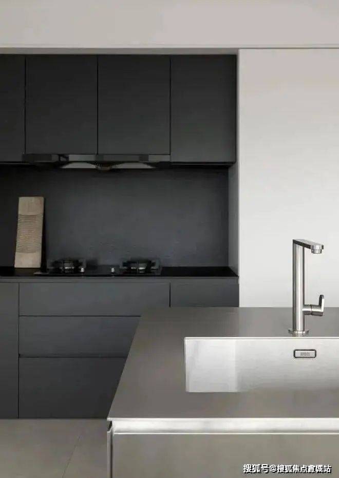 通过两扇2m长的深灰色烤漆移门控制开合,让空间打破传统的门和墙壁的限制,形成一个极具自由的穿梭的空间格局。