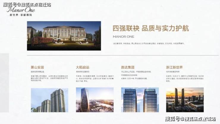 【浙江新世界】:杭州地标营造专家——萧山区百强房企,代表作:杭州之门、瑰郦中心、杭州雷迪森财富中心、杭州雷迪森铂丽酒店、杭州兰博基尼酒店;