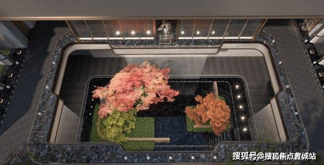 项目利用下沉式景观庭院,结合艺术花园、摩登水景等,打造了一座高端的下沉式会所,规划设有泳池、健身房、行政酒廊等场景。