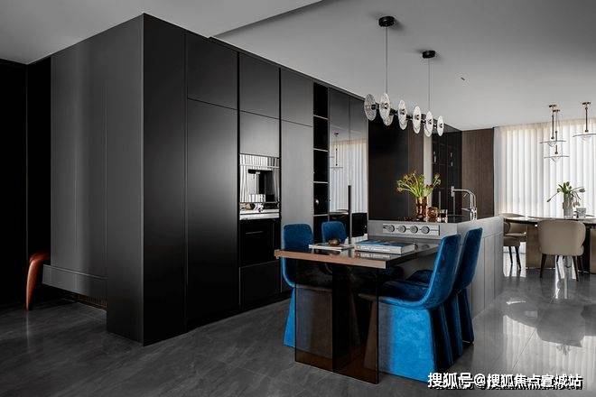 Kitchen: U-shaped circulation design, high-end kitchen appliance brand, humanized design (double glass sliding doors, integrated dining, kitchen and floor, no blind spots for hygiene in the future)