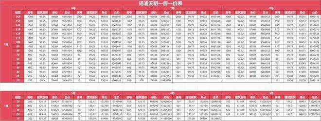 项目一房一价表▼