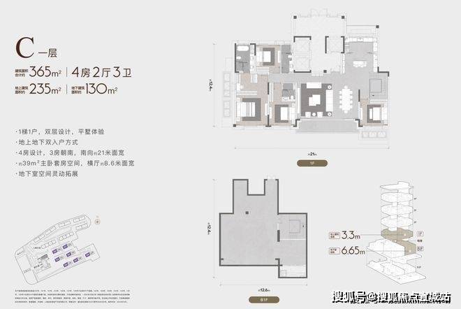 而汤臣君品的平墅却是真平墅,无论你买入1楼还是4楼,除了地面标准的大平层,都额外赠送层高4m-6.65m,建筑面积约109-187㎡的独立的地下室.整个项目以地面为轴,将居住和亲密社交放在地面平层,而家政、储藏,个人爱好,初见社交等功能分离到地下室,实现了真正别墅才有的居住体验.这个产品与平层比,比的是低密度的环境舒适,高附赠的额外附赠,不仅仅是地下室,因为一梯一户产生了额外的红利——每一层的公共空间.